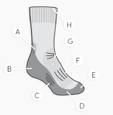 icebreaker 長中筒厚毛圈登山健走襪是一款遠征型的登山襪,是為了非常寒冷的冬季登山健行所設計,它使用 80% 美麗諾羊毛、19% 尼龍以及 1% 萊卡彈性纖維製成,並且採用密集墊層的設計,可以最大程度地提供保暖和舒適性。下圖展示了 icebreaker 登山襪的八大特色: