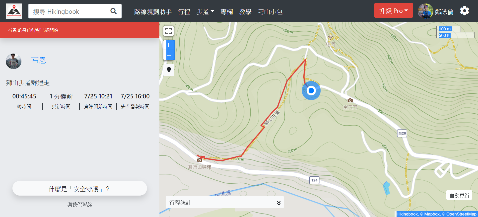 Hikingbook 的「安全守護」,將這些問題變得更簡單。只要有行動網路訊號,安全守護就會自動上傳軌跡。留守人可以開啟行程專屬的即時動態網頁,追蹤隊員的位置。這不僅對於隊伍與留守人都相當方便,如果隊伍遇上意外狀況,當行跡越詳細,對於外界的救援行動就是越大的幫助。