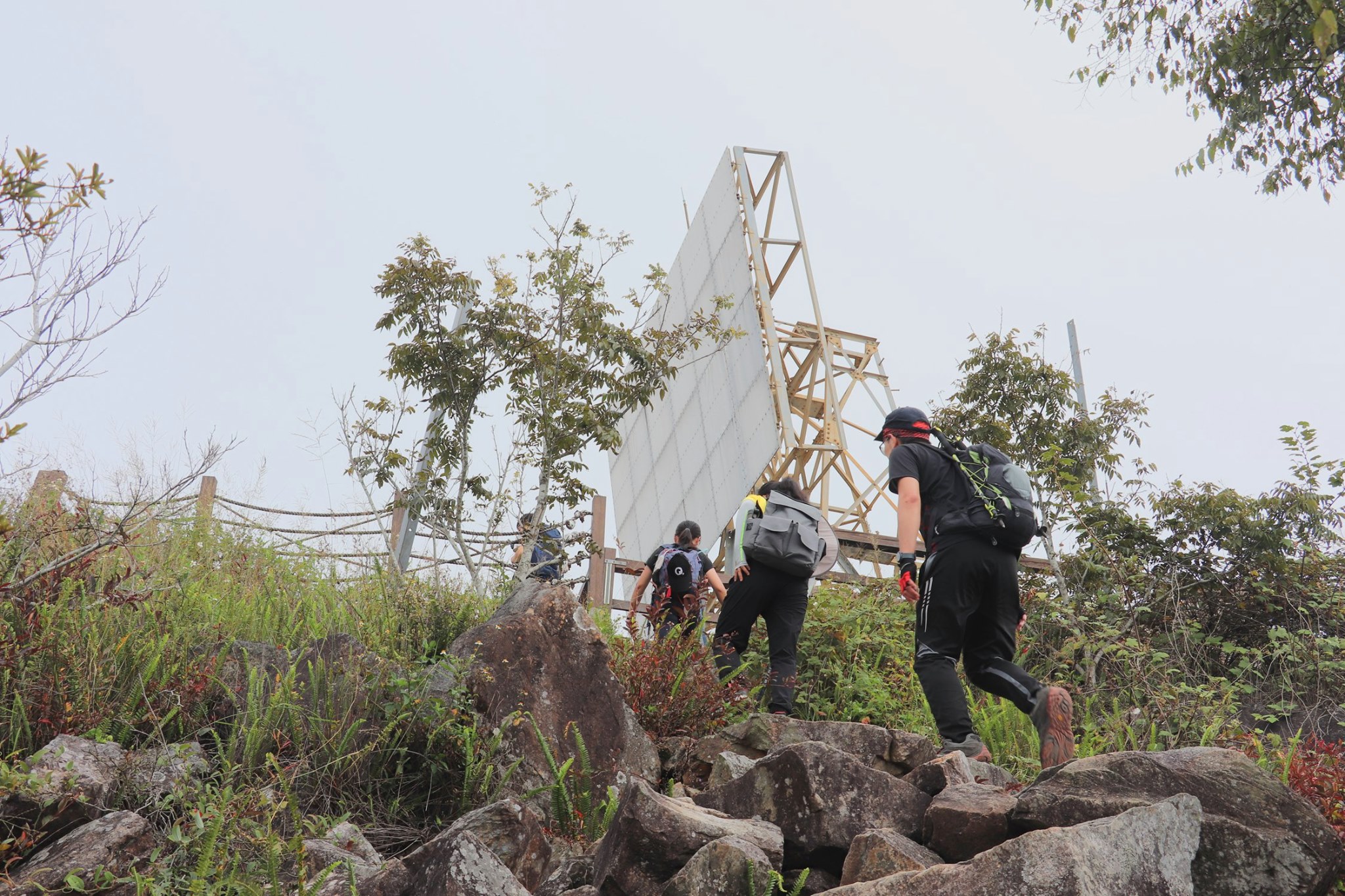 過了最後一個彎,再攀上幾塊大岩石,陡上的階梯後方,巨大的微波反射板矗立在視線盡頭,那就是谷關七雄之一──東卯山山頂。