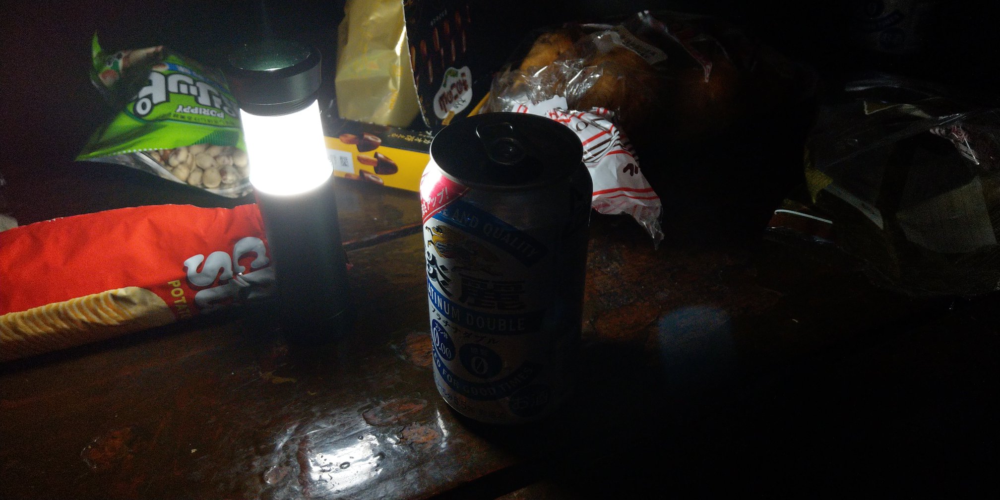 到山屋後,我們遇到兩位當地古道保護協會「増毛山道の会」的成員要上暑寒別岳巡視,他們已經熟練地在燒柴煮水。晚餐閒聊時,意外得知小林先生跟協會的人都曾到臺北出差,明明所有人是第一次見面,聊起臺北的大小事卻好像認識很久的朋友一樣,為了紀念如此神奇的緣分,他們甚至拿出原本要在山頂喝的啤酒跟自己釀的梅酒,跟我們把酒言歡直到天黑。