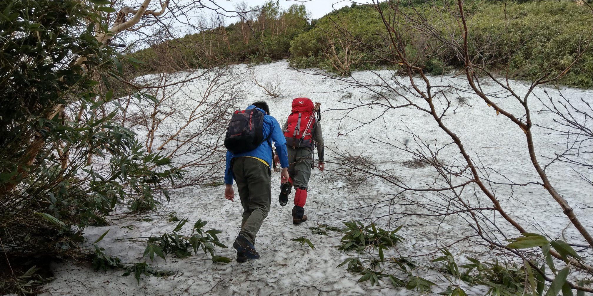 協會的人聽聞我們隔天要縱走到雨龍沼濕原的行程,紛紛搖頭強烈勸退,說經過山頂以後的路段正在融雪,不易行走,推估我們無法按照計畫抵達另一頭的火車站。但來回單攻幾乎要重新再規劃,正當我們煩惱下山到增毛後是否還有公共運輸可以回到札幌時,小林先生立刻帥氣地說:「不然你們明天跟我一起單攻來回,下山後載你們回札幌吧!」