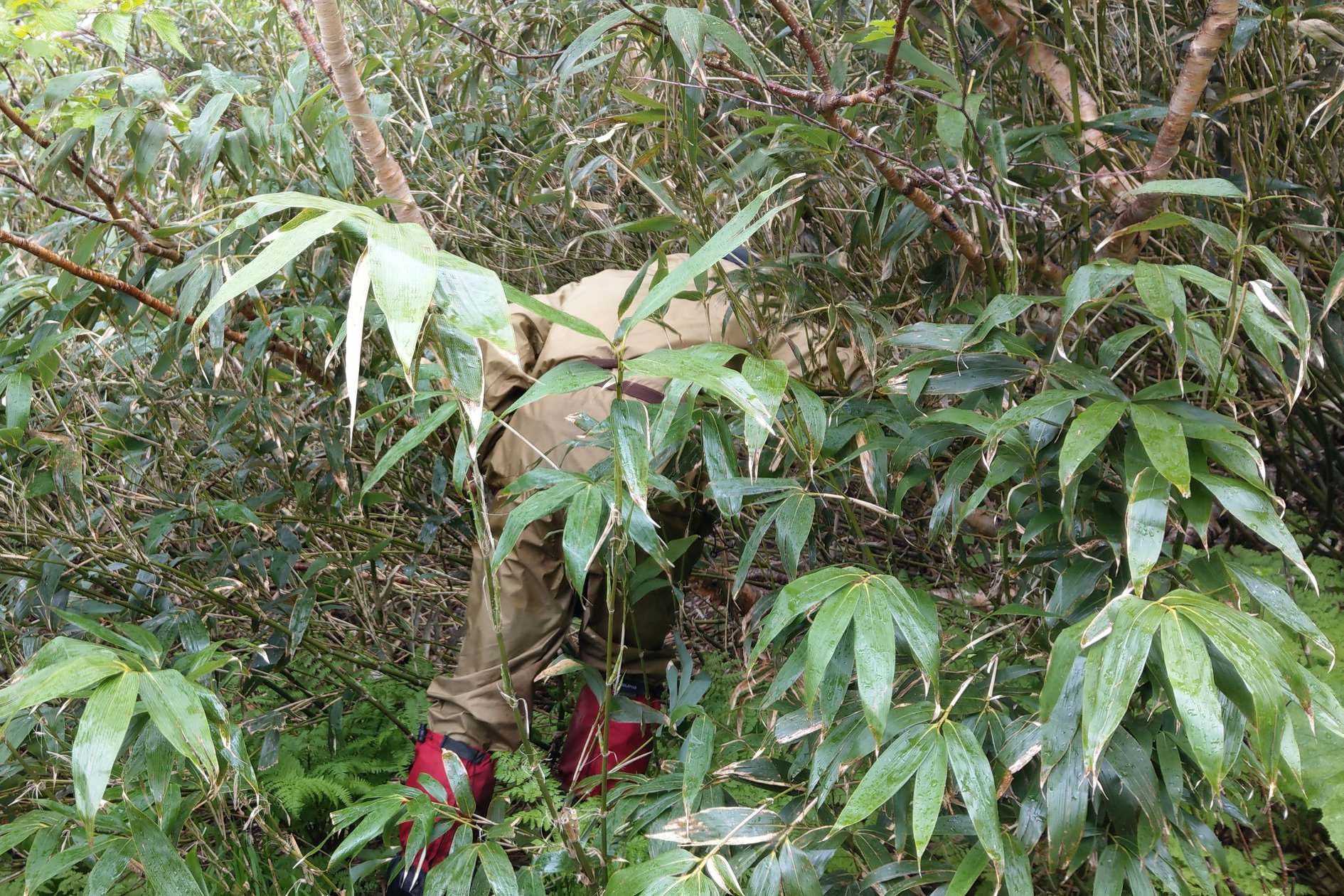 然而,意料之外的事又發生了,下山途中小林先生突然停下從包包拿出像是廚師的圍裙,穿上後直往竹林裡面跑。