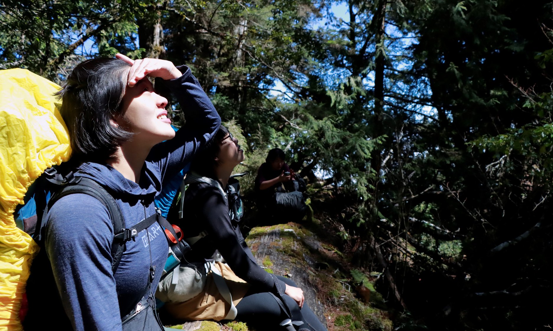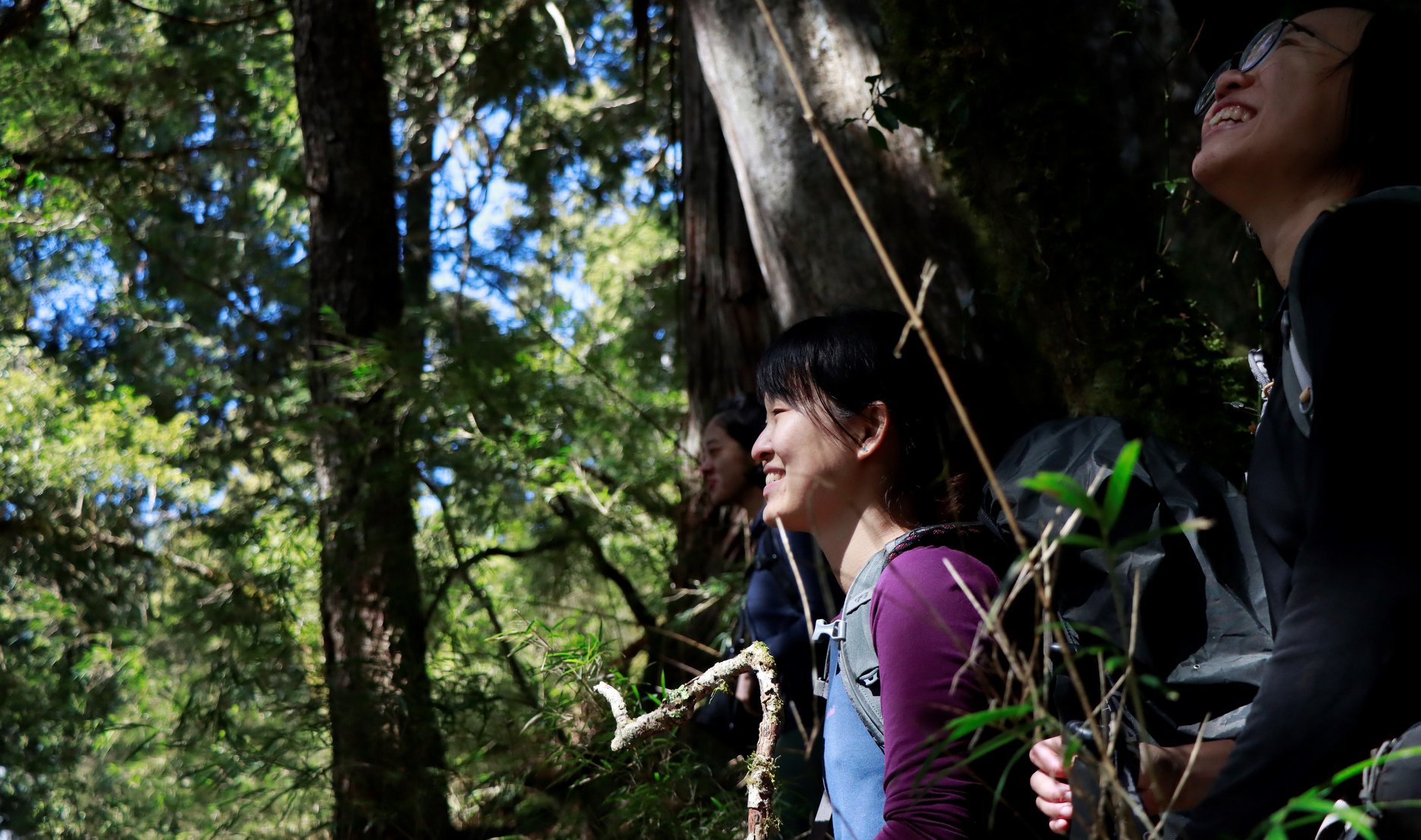 越往高處走,森林變得越安靜,當大家停下腳步時,彷彿連時間都跟著靜止了。我們抬頭望向樹梢,渴望樹梢的空氣,想像自己成為森林的一份子。當我們走在森林裡的時候,我們算是森林的一份子嗎?