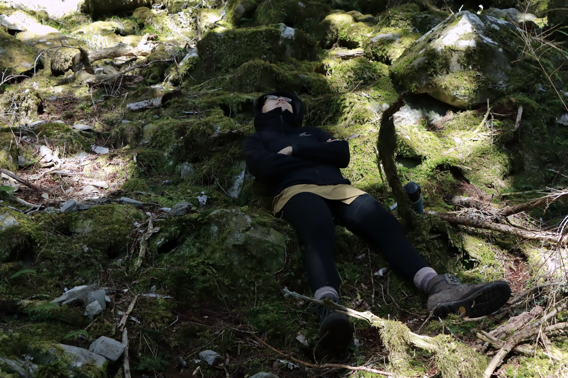 關於我從隊友身上經驗到的事,充滿可能性的並不僅止於外在事物,每個人將自己放在大自然裡的方式都全然不同。Misha 經常在休息時間冥想,小魚喜歡和樹、草、苔癬、石頭們親密接觸,沛則善於觀察事物的細節和姿態。與他們相比,我總感覺自己對於事物的情感太過淡薄,視野太過抽離,以至於缺乏 Misha 的洞察力、小魚的關懷力,以及沛的想像力。