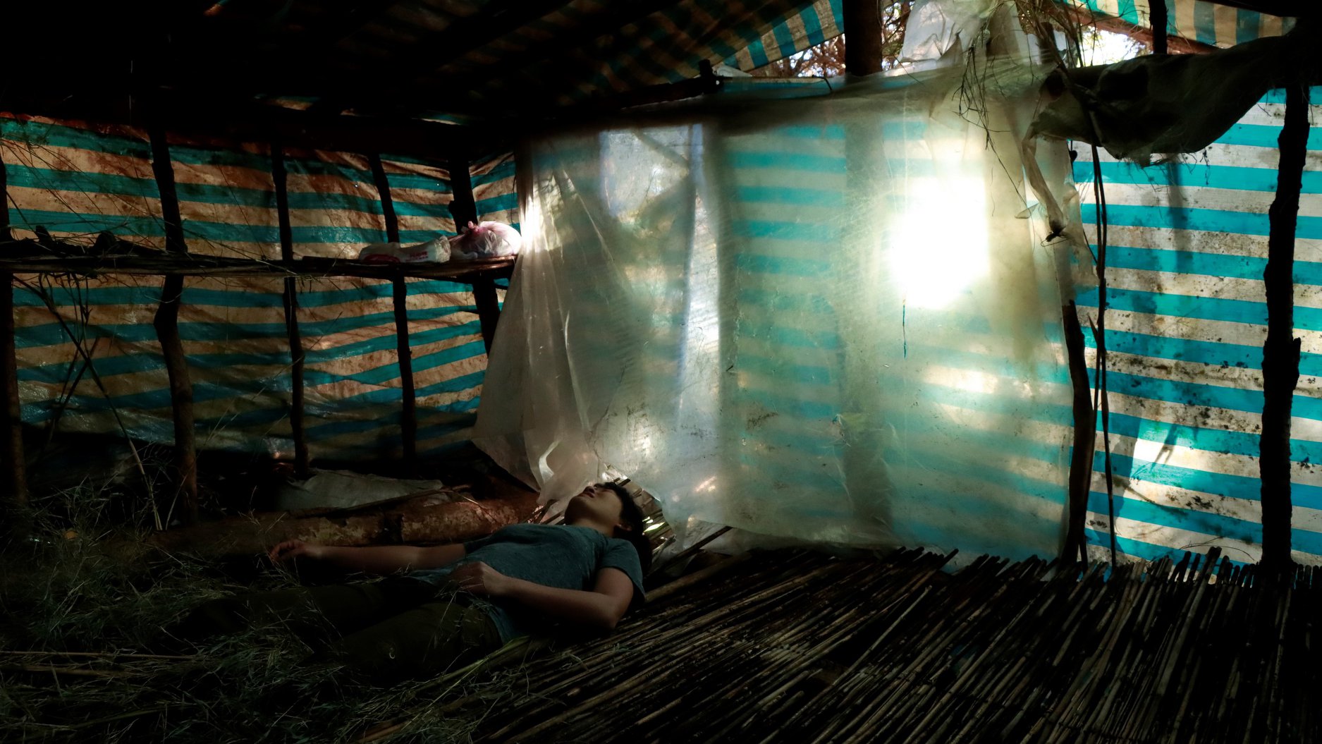 最裡頭是用粗箭竹鋪成的高架床板,空間約可睡上四到六人,不過一半床面已殘破,另一半嚴重傾斜,我和沛、小魚三個瘦子擠上去,已然甚是勉強。床上方有置物架,政翰在上頭摸到一包未開封的平板衛生紙,陳舊包裝透露出濃濃的年代感,品牌更是聞所未聞。床前則是可供炊煮聊天的活動空間,幾段鋸得平整的樹幹為桌椅,斷面上厚厚青苔訴說此處既潮濕又罕有人跡。靠牆一側的空間則整齊堆滿劈好的乾柴。