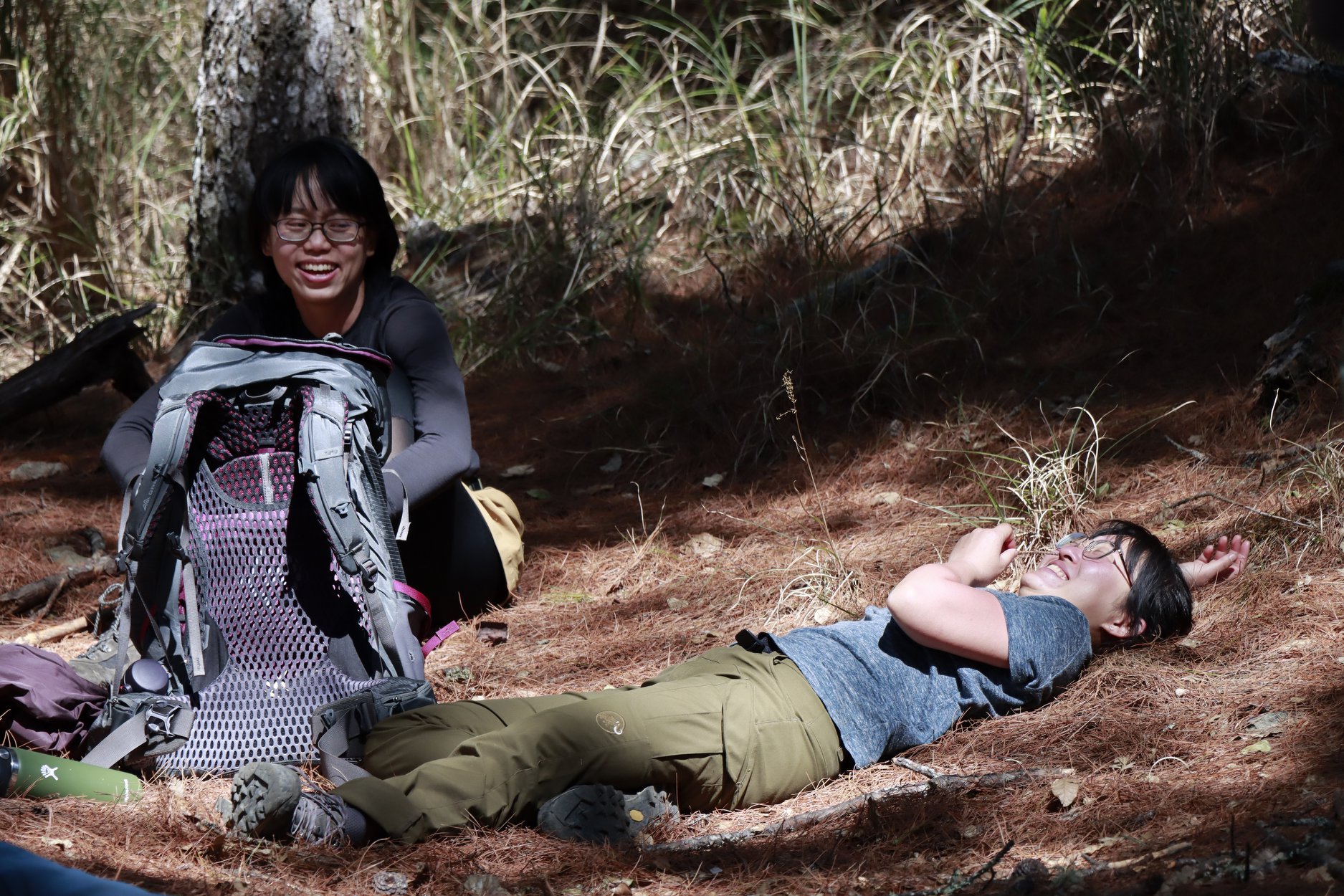 前兩天都押隊墊後的政翰,大概是看我們走得實在太散漫,決定自己先往前找樂子。有時候我擔心他都沒參與到大家的話題和活動會感覺很寂寞,雖然時至今日我始終不清楚他自己究竟發現什麼有趣的事物——可能是稀有蘭花,或是珍貴的蕈菇與藥草。但每次再看見他都是一副怡然自得的表情,也就心安了。