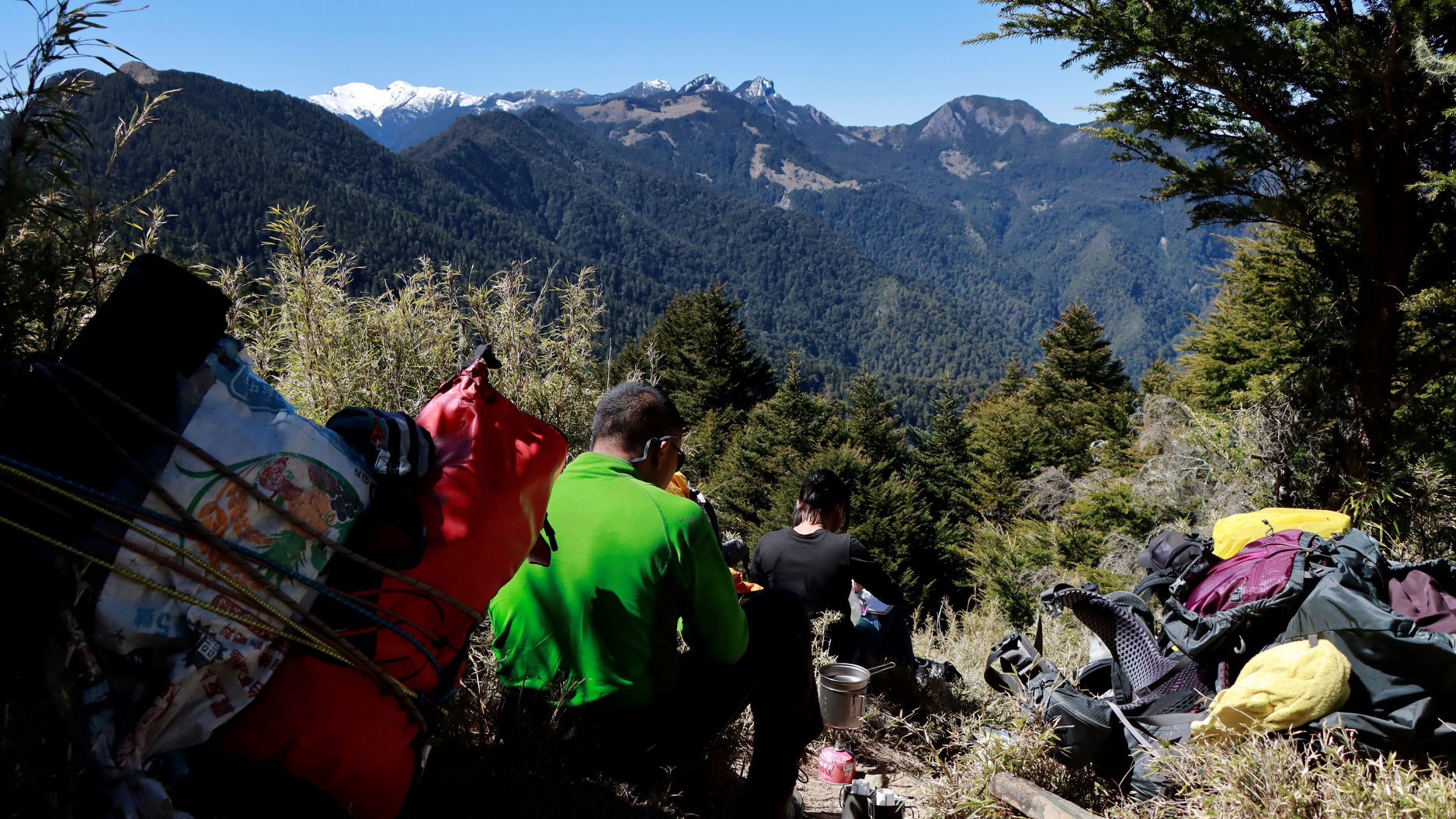 我們蹲坐在箭竹叢中,一如往常拿出鍋爐煮咖啡泡茶,有人已經忍不住扒掉外衣,任由乾燥空氣蒸散渾身濕溽。