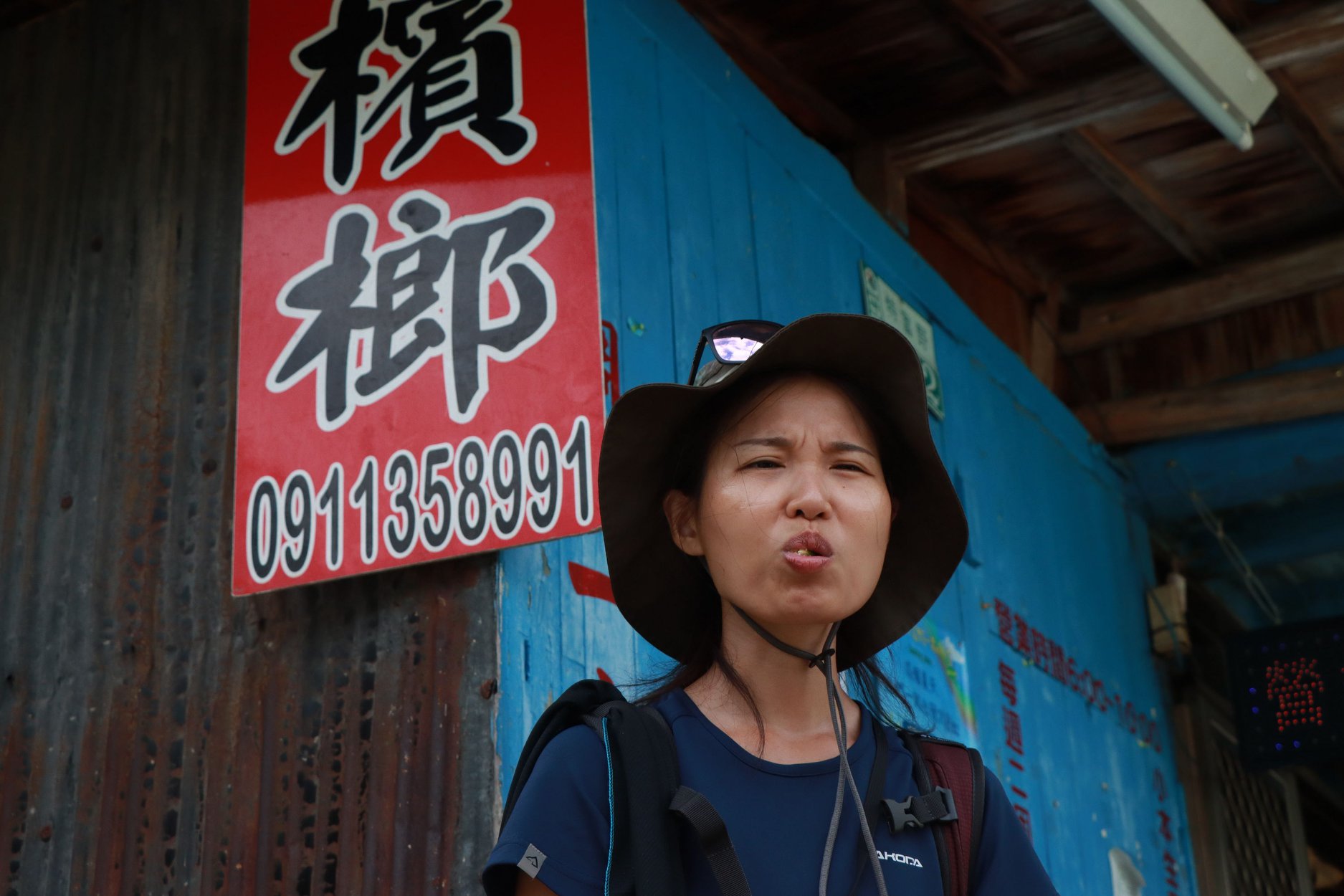 這裡有一個小插曲:我們在小徑上看到賣檳榔的小店,我慫恿大家絕對要吃一次,畢竟人生總是要因為這一趟旅程有點突破吧!不過因為還是不太敢吃石灰,所以就跟老闆說:我要買五顆。老闆露出鄙夷的微笑之後,直接免費送我五顆,還親自教學要怎麼吃。一口咬下,又鹹又澀的汁液流出,味道說不出的詭異……。