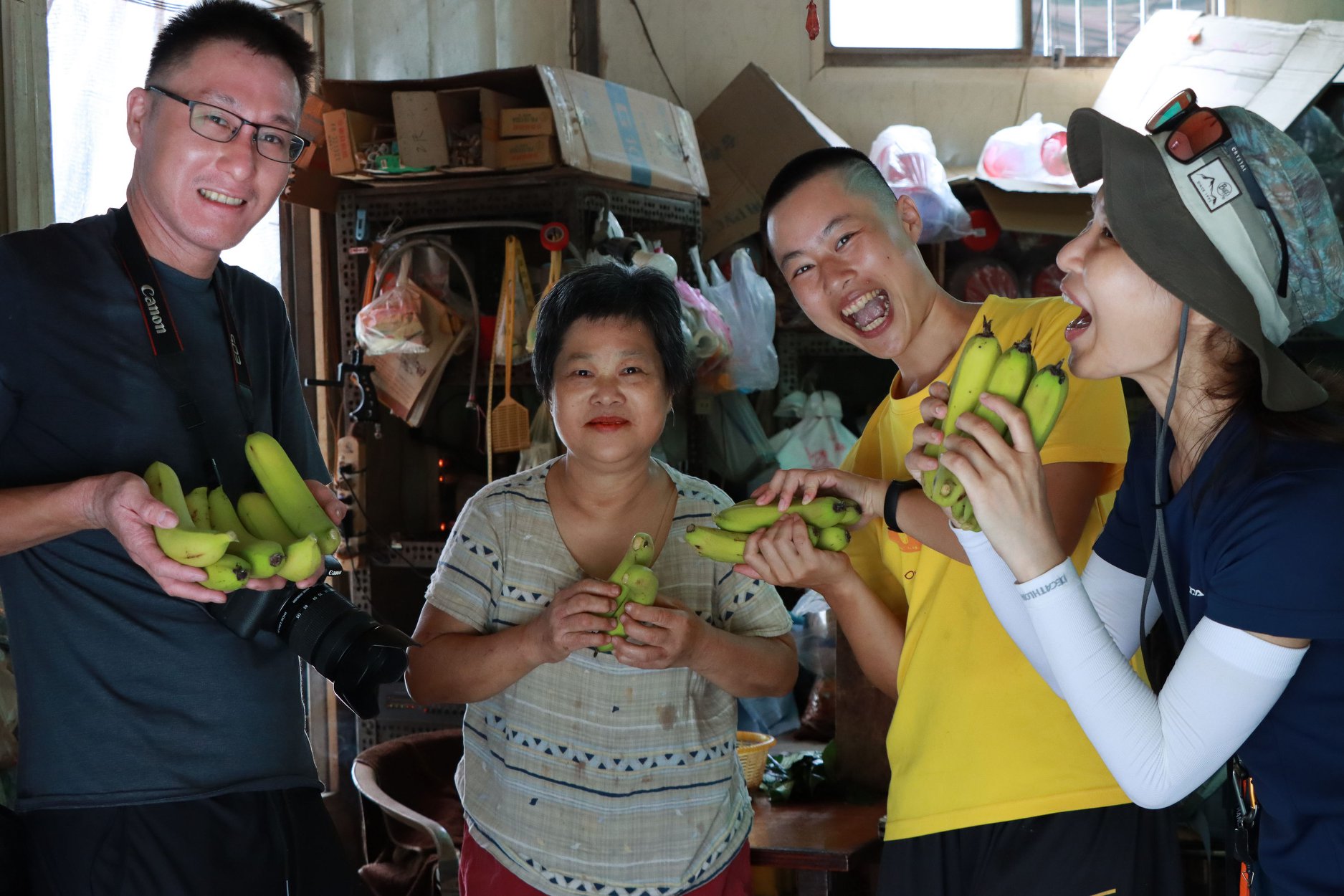 直到要走時,我們任性地指著桌上的香蕉,要跟老闆娘買兩支,但老闆娘立刻就說:「你們都拿去!不夠我還有!」不多不少,各位觀眾:十二支蕉!
