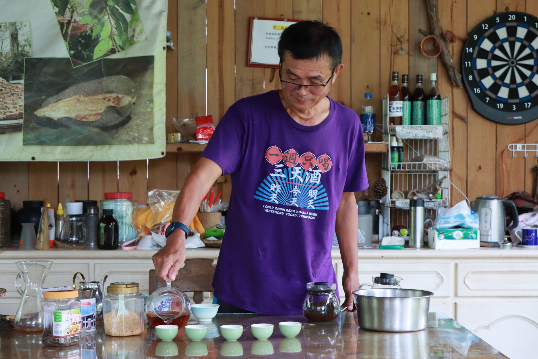 老闆就是茶山知名的「許大」,在當地也經營了許久,許多遊客慕名而來,而我們也就這樣坐下來,聽他分享著博士級的故事:老鷹、黑鳶、稀有迷鳥、高粱、阿里山十大功勞、一口好茶、一桌好菜……。太多精彩,實難以一言蔽之。