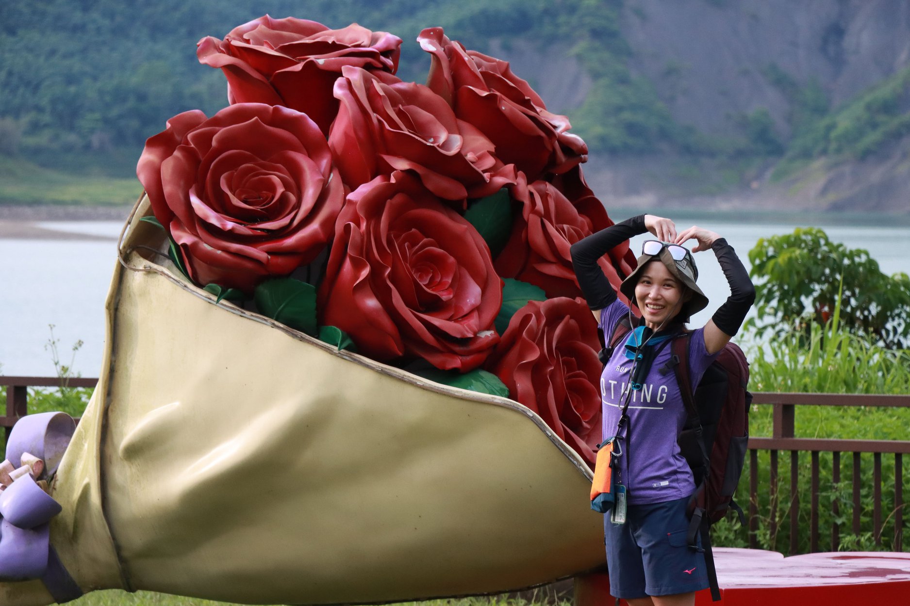 大埔情人公園與曾文水庫相依,以浪漫玫瑰花、吊鐘、巨型香水瓶、心型拱門打造。