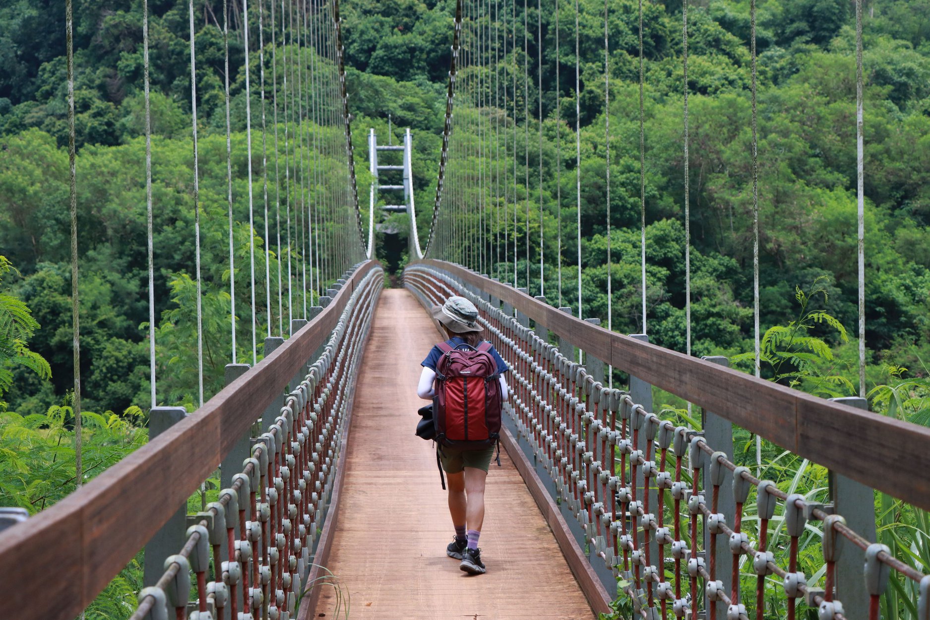今天一口氣穿越了新美、山美、達娜與里佳部落,又走了好幾條獨具特色的吊橋,更棒的是還享受了里美避難步道的原始山林之美,而且還包場了!雖然一路走下來並不輕鬆,但行有良友路途短,朋友們吵著鬧著,時間也就過得特別快,邊走邊欣賞達娜伊谷兩岸風光。我們一路上上下下,在公路與森林中穿梭,當遇到沿途有原始林相時,奢華地享受熱帶雨林的氛圍,擁抱樹林與山谷的多樣景觀。