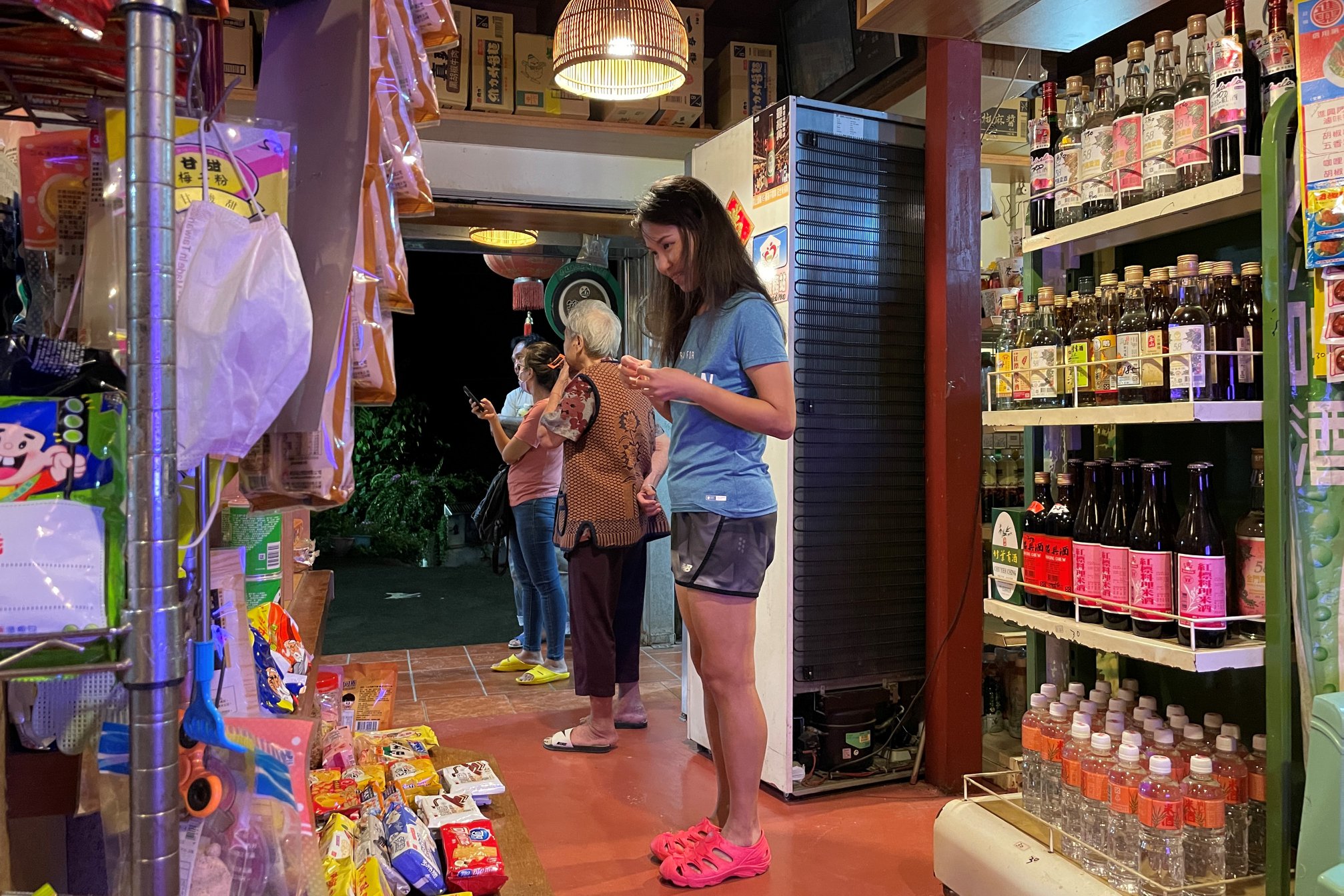 看到這家商店,同伴們眼中就只有那一只冰凍冰箱,打開就拿出冰棒,一屁股坐下;熱情奔放的老闆娘,嚼著檳榔,對我們不是太好奇;但,我們對她可好奇了,開始天南地北地聊起她的生活,老闆娘說從小就在這邊種檳榔,做生意,訴說著當年沒有公路時的生活如何?